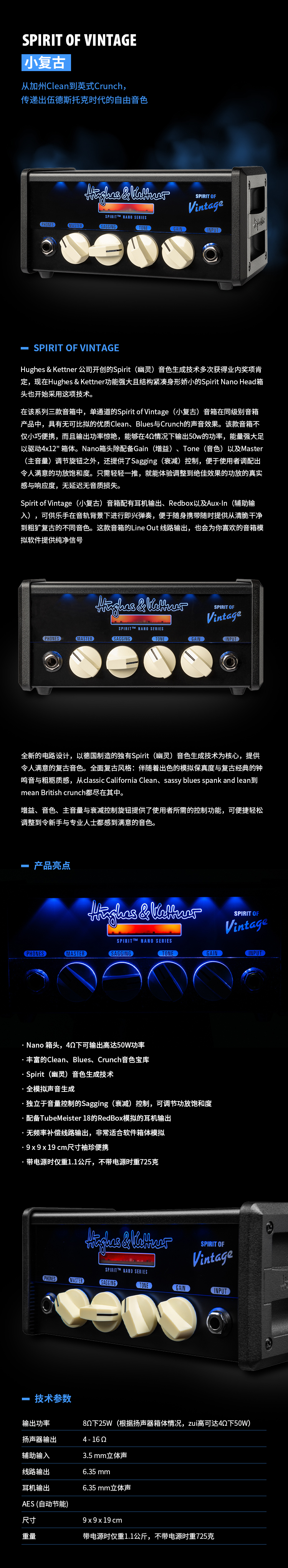德国Hughes&Kettner Spirit Nano电吉他效果器箱头 小复古